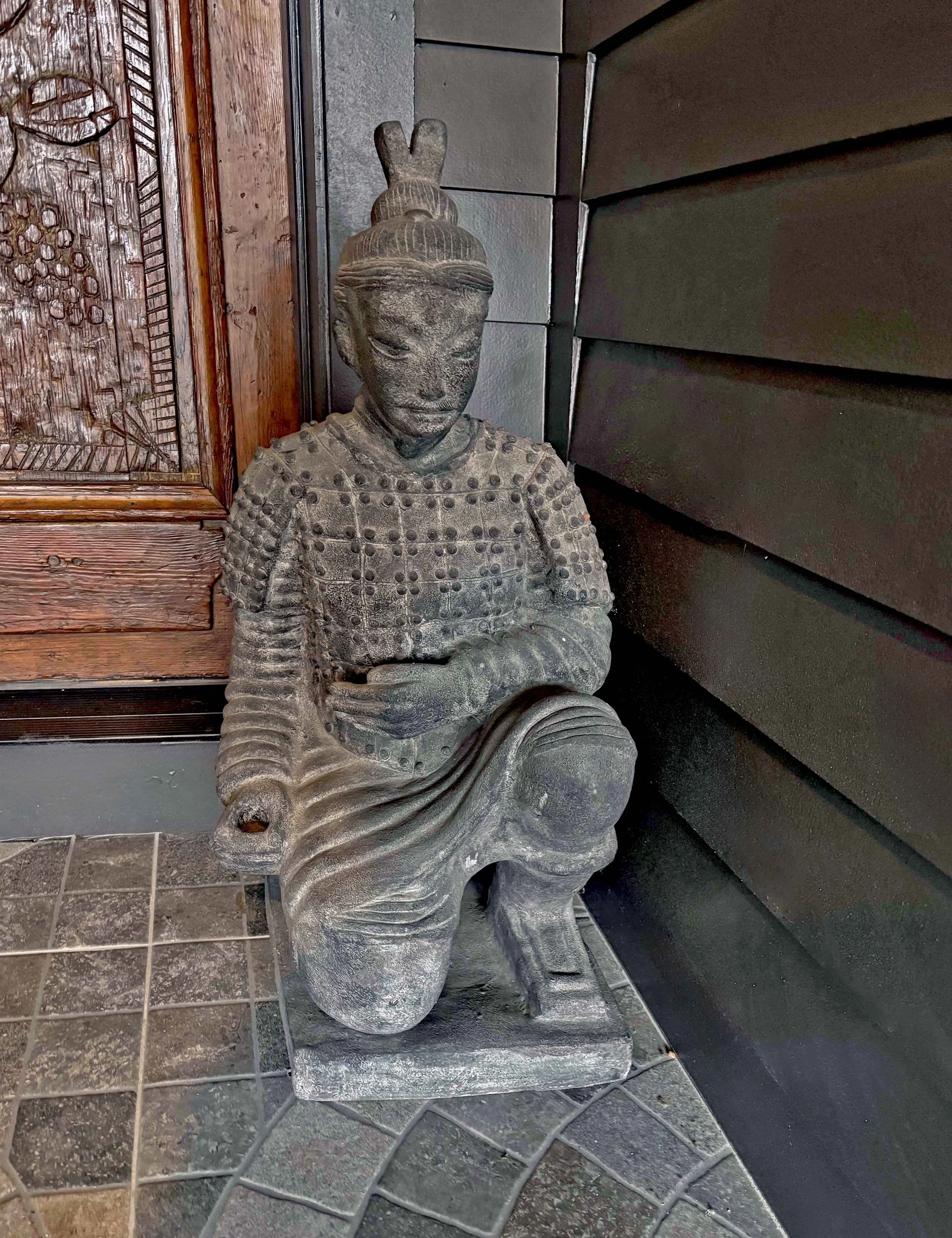 A pair of proud Terracotta Warrior statues - also culturally appropriate to the family's heritage - guard the Front Porch on either side of the Front Door.