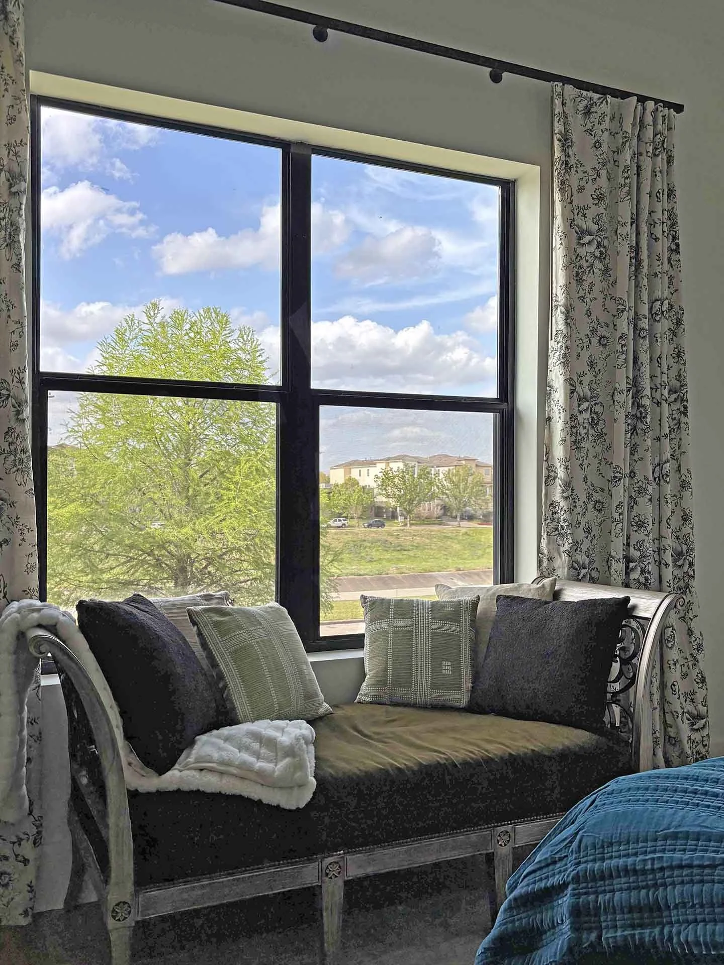 A daybed is set against the window to enjoy the view and provide a cozy spot for reading.