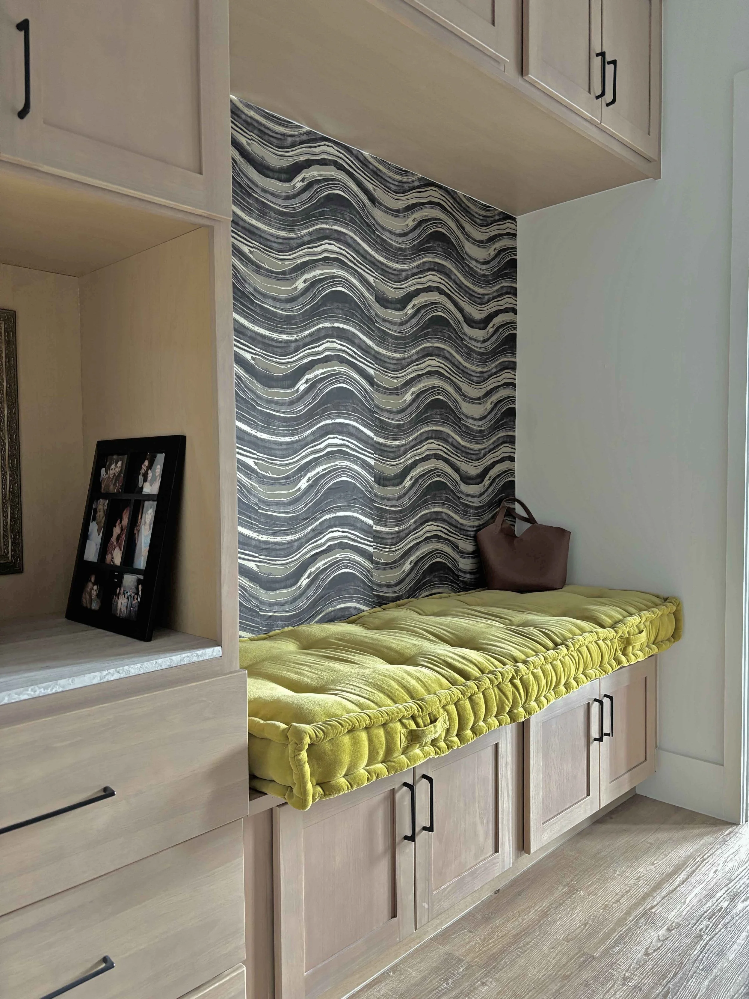 The Mudroom cabinetry and bench provide plenty of room for shoes and setting down items as you come in.